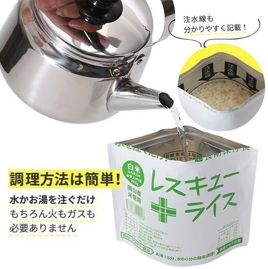 独自技術で7年保存可能な白米 ! 直近製造品をお届けします。 パッケージ内にスプーンが入っており食器も不要! 少量の水かお湯だけでおいしいご飯の出来上がりです♪