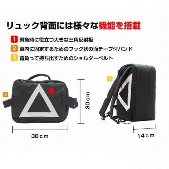 渋滞や大雪の閉じ込めの対策に車載用防災リュック 車の中に設置するために考えられた様々な機能を搭載! LA・PITAオリジナル車載用防災リュック